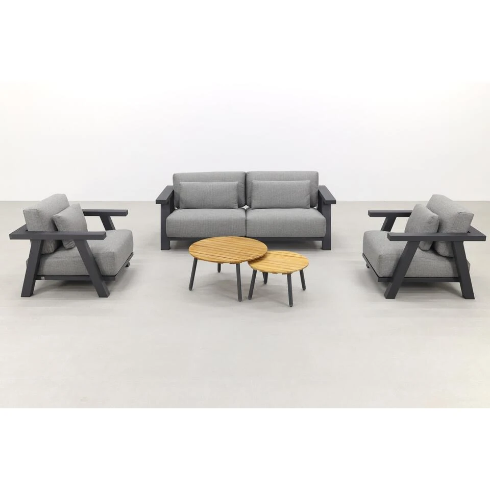 Wil jij een loungeset die als eyecatcher in je tuin staat met een hoog zitcomfort? Dan is deze Iconic loungeset van 4 Seasons met Mindo loungetafels perfect voor jou! De Iconic loungeset heeft een unieke vormgeving met brede poten en brede kussens. Door de royaal gevulde kussens weet je zeker dat jij heerlijk zal zitten! Bij deze loungeset krijg je er twee Mindo koffietafels bij. Door de verschillende afmetingen geeft dit een speels effect. De tafels zijn licht van gewicht waardoor je ze eenvoudig verplaats naar een plaats waar jij ze hebben wilt. Met deze loungeset weet je zeker dat je ultiem kunt genieten in je eigen tuin! Wil jij dat ook zo graag? Bestel dan direct online!