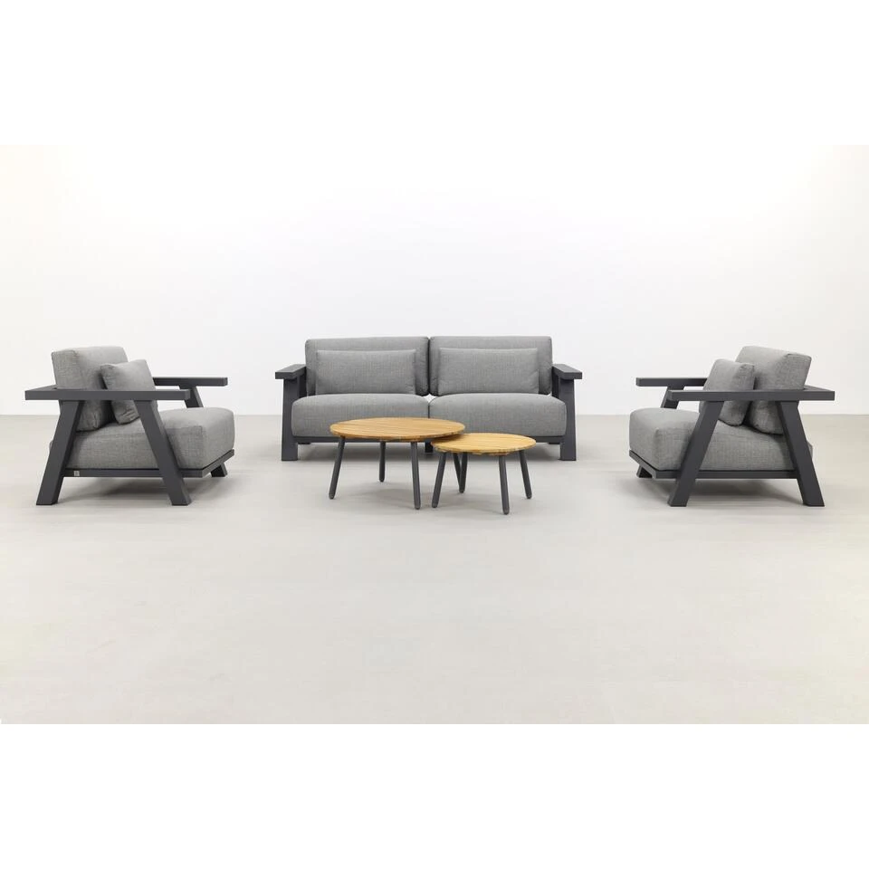 De Mindo loungetafels zijn gemaakt van aluminium en teakhout. Het aluminium is gekozen zodat deze tafels licht van gewicht zijn en ze niet gaan roesten. Het teakhout zorgt voor een warme uitstraling. Doordat de tafels twee verschillende afmetingen hebben geeft dit al een speelse look. Je kunt de tafels bij elkaar plaatsen, of juist uit elkaar. De keus is aan jou! Het frame voor deze Mindo loungetafels is uitgevoerd in antracieten kleur, hierdoor past het perfect bij deze Empire loungeset. Houdt er rekening mee dat teakhout de eigenschap heeft om door de weersinvloeden te gaan verkleuren. Het hout zal een grijzere kleur krijgen. Als je huidige kleur van het hout langer wilt behouden kan je het tafelblad behandelen met een teak protector. Door middel van een teak shield bescherm je het hout tegen vuil en water.