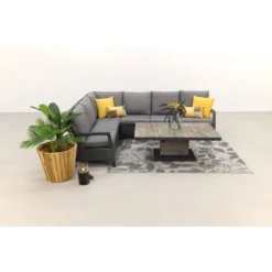 Aanbod omvat: 1 x Salontafel, 1 x Hoekbank, Kussens inbegrepen