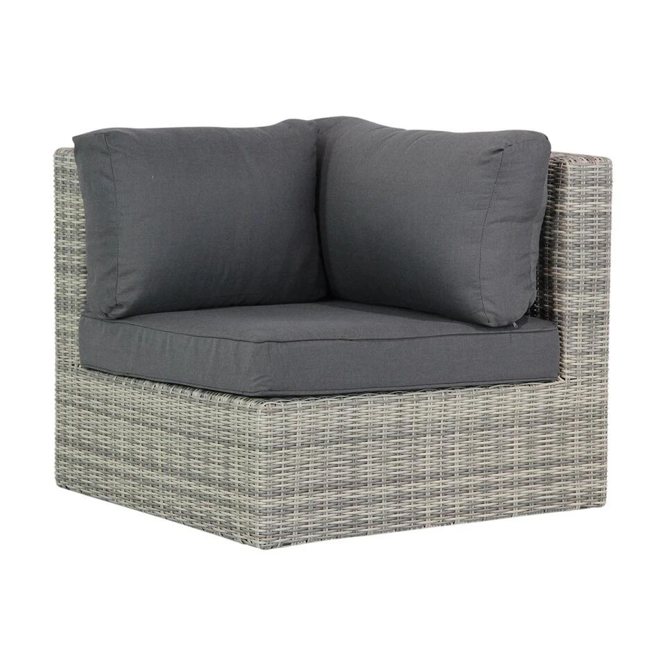 Garden Collections Amico hoek loungeset 3-delig Wat geeft tijdens de zomer nou meer voldoening dan lekker buiten zitten in jouw eigen tuin? Maak jouw tuin gezellig en sfeervol met de luxe Amico loungeset van Garden Collections uit de Tuinmeubelshop collectie. De zeer robuuste white grey loungebank met extra brede armleuningen is afgemaakt met grijze kussens, die qua tint een prachtig geheel vormen met de bank. Het is ook mogelijk om je eigen loungeset samen te stellen uit onze grote collectie tuinmeubelen. Neem contact met ons op of bezoek één van onze megastores en laat je adviseren. De Garden Collections Amico loungeset 3-delig bestaat uit: * 1 x Garden Collections Amico open bank links * 1 x Garden Collections Amico open bank rechts * 1 x Garden Collections Amico hoek module Eigenschappen Garden Collections Amico hoek loungeset De Garden Collections Amico loungeserie is zeer comfortabel en heeft een strakke vormgeving. De loungeset heeft een robuuste uitstraling door de dikke armleuningen en is voorzien van goed gevulde kussens, waardoor je hierin heerlijk zit. De loungeserie heeft een gepoedercoat aluminium frame en is omspannen met een sterke halfronde Hout vlechtdraad. De draad is 100% kunststof en weer- en uv-bestendig. De Garden Collections Amico loungeserie heeft een hoge rugleuning, een royale zit en zeer robuuste armleuningen, waardoor je erg comfortabel zit en je lichaam optimaal wordt ondersteund. De Garden Collections Amico loungeserie is voorzien van verstelbare pootjes. De kussens van de Garden Collections Amico loungeserie zijn voorzien van een speciale coating die ervoor zorgt dat de kussens water- en vuilafstotend zijn. Deze coating zorgt er ook voor dat de kussens niet tot nauwelijks verkleuren. De onderzijde van de zitkussens is van textileen, dit zorgt ervoor dat de kussens ademend zijn en goed tegen vocht kunnen. De kussenhoezen zijn voorzien van een rits zodat je deze koud kunt wassen wanneer dit nodig is.