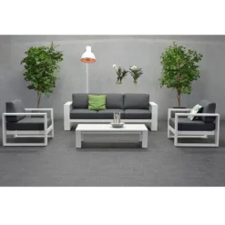De Senja sportbank is gemaakt van een onderhoudsvrij en weerbestendig aluminium. Het aluminium is bewerkt met een donker grijze poedercoating. Het voordeel van aluminium is dat het onderhoudsvrij is, wanneer de loungestoel vies is geworden kan deze eenvoudig schoon gemaakt worden.