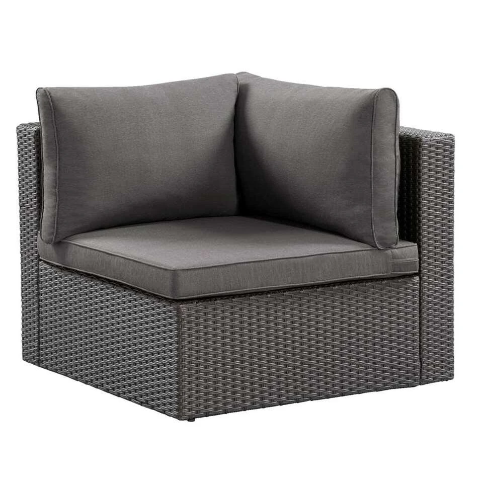 Modulaire loungeset Dordogne biedt ruimte om met 4 personen heerlijk te relaxen. De gehele serie is gemaakt van hoogwaardig aluminium en kunststof met een wicker look. Voordeel van kunststof wicker is dat deze veel langer mee gaat dan gewoon wicker. Zo kan jij dus optimaal genieten van zowel de kwaliteit als zijn prachtige uitstraling. Deze tuinset wordt geleverd incl. donkergrijze Brest loungekussens, gemaakt van katoen/polyester. Dit is een zeer complete en luxe set die jou verzekerd van vele uren relaxen in de tuin. Laat de zon maar schijnen!