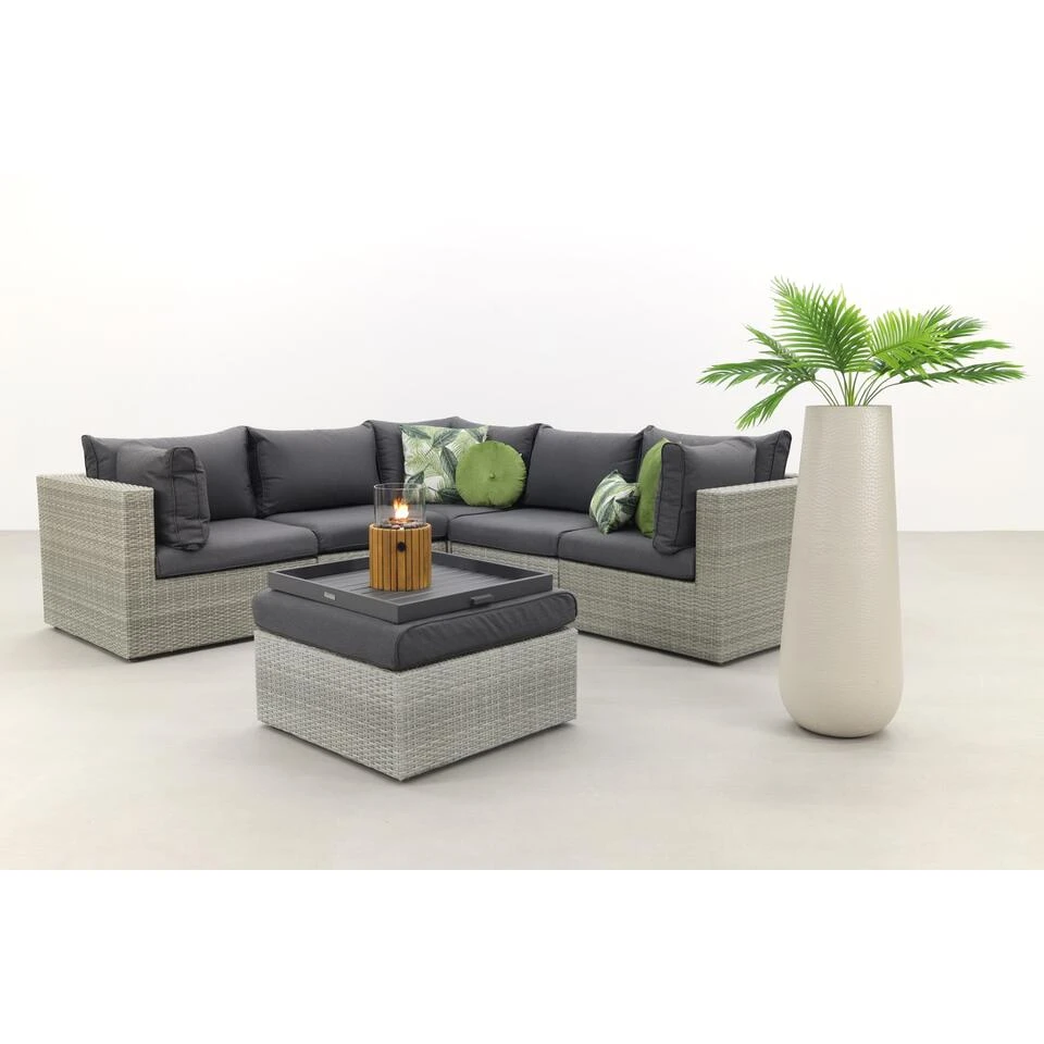 Super mooi loungeset met extra stevige kussens. De kussens hebben een water en vuil afstotende coating wat ervoor zorgt dat de kussens beter beschermt zijn tegen vocht en vuil. De loungeset bestaat uit losse elementen wat ervoor zorgt dat de bank extra stevig is. De element zijn overigens aan elkaar te koppelen.