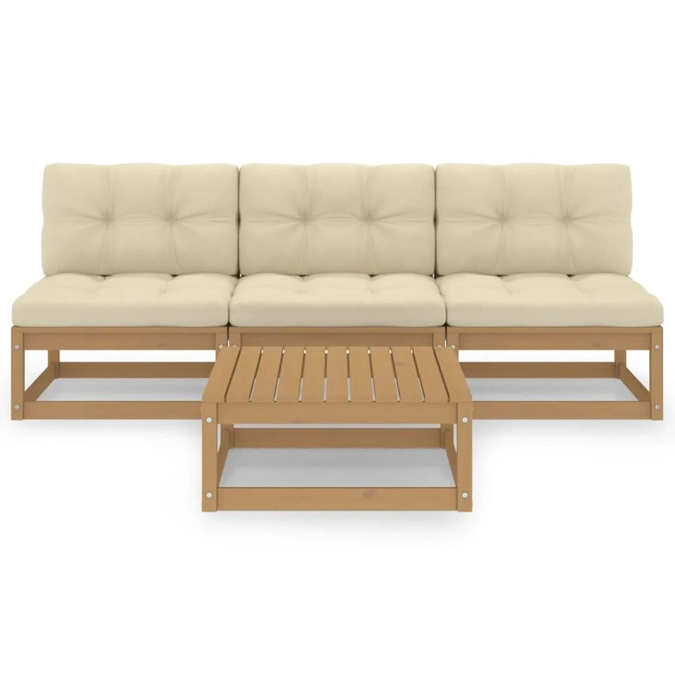 De set is gemaakt van massief grenenhout, waardoor hij stevig en stabiel is. De kussens bieden extra comfort. Je kunt hem combineren met andere modulaire segmenten om zo je eigen persoonlijke loungeset samen te stellen!