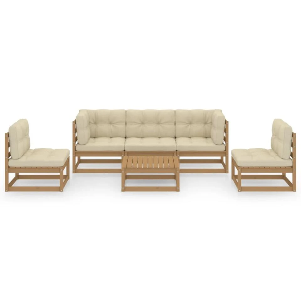 De set is gemaakt van massief grenenhout, waardoor hij stevig en stabiel is. De kussens bieden extra comfort. Je kunt hem combineren met andere modulaire segmenten om zo je eigen persoonlijke loungeset samen te stellen!